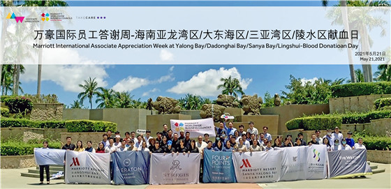 5月21日,海南省血液中心三亚分中心与三亚多家万豪酒店共同举办的无偿献血活动在三亚亚龙湾万豪酒店顺利开展。为答谢社会,回馈社会,三亚万豪国际酒店每年都定期组织员工献血,据悉,当天共有59人成功献血,献血量达15000毫升。