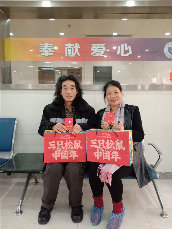人群中,管文宁一家四人格外引人注目,他们分别是兄妹、表姐妹、丈母娘和女婿的关系。管文宁是我们机采科的老面孔,自2001年10月开始无偿献血,共计捐献57次,其中全血900毫升、血小板108治疗量。他说:“我大哥一直在全血,前几年超龄了。我献三次全血后开始献血小板,争取多帮助一些病人,现在我加入了无偿献血志愿者队伍,在自己献血的同时再发挥一点余热,为无偿献血者们做志愿服务。”在两位哥哥的影响下,管凤娥自2017年7月开始捐献血小板,累计捐献27次,53个治疗量。表姐张春梅自2017年8月开始已捐献了20个治疗量血小板。她和管风娥也先后加入了无偿献血志愿者的队伍。2019年1月,张春梅说服女婿王南,开启了机采血小板之旅。他们一家四口是名副其实的“献血之家、爱心之家”。当天他们四人如愿捐献了8个治疗量的血小板,给素不相识的病患带去了新年的希望和祝福。