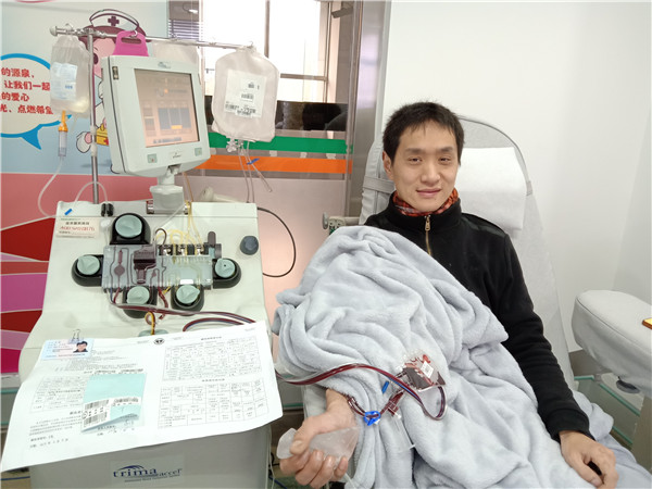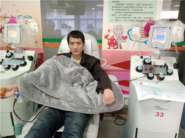 范明和王亮第一次献血都是2008年大学期间,范明捐献全血1200毫升,王亮捐献全血400毫升。之后两人参加工作,因忙于工作,献血的事放了一段时间。一晃就到了2018年春节,范明路过新街口大洋百货献血车,巧遇志愿者正在宣传无偿献血,他跟志愿者聊了曾经献全血的经历,觉得半年间隔期较长,容易忘记,于是志愿者建议他捐献血小板,范明记下了中心的地址,三个月后抽空来到中心机采科,顺利捐献了2个治疗量的血小板,回家跟弟弟王亮讲了捐献机采血小板的经历。五天后,王亮也来到血液中心,护士们困惑了,好面熟呀,不是前几天刚献过嘛!仔细询问后才知道两人是双胞胎。自此,兄弟俩成为了机采科的“常客”,截至大年初一,范明捐献血小板30个治疗量,王亮捐献血小板28个治疗量。