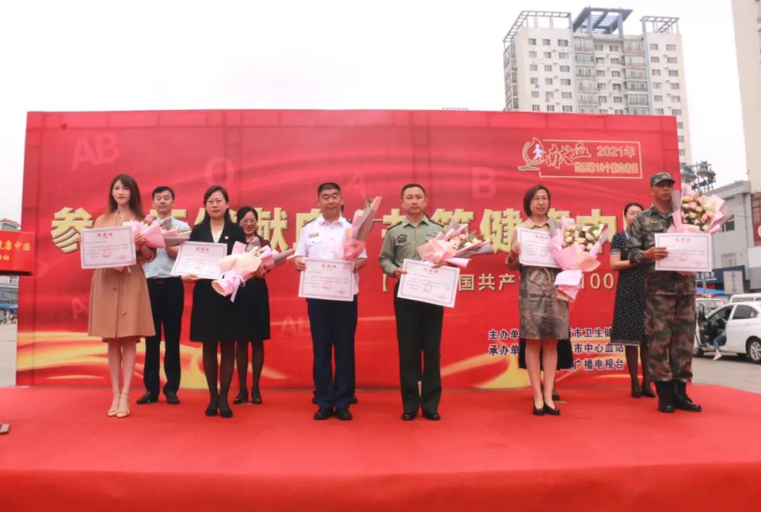 活动仪式上,为2018-2019年度全国无偿献血奉献奖金奖获得者代表颁发证书,为疫情期间作出突出贡献的佳木斯市消防支队、驻佳某部、佳木斯大学、黑龙江农业职业技术学院、华电能源股份有限公司、力佳驾培集团等团体代表颁发了感谢状。