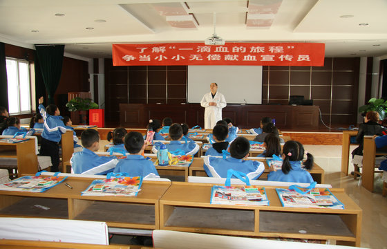 当他们走进干净整齐的业务楼内,就被每层楼底墙壁上挂的宣传画,和走廊里摆放整齐的宣传板块所吸引,纷纷指着宣传画中的内容议论纷纷,他们对血液知识充满了好奇。当血站无偿献血科赵国栋科长用现场互动的方式,给同学们讲解简单的血液知识时,孩子们现场参与的积极性高涨,纷纷举手抢着回答问题。