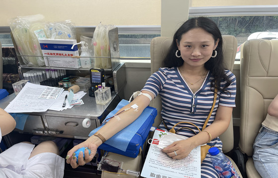 乔顺公司综合办公室职员陈慧芳正在献血(肖莉娇摄)