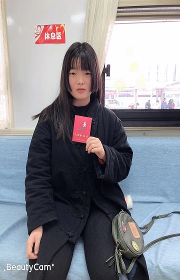 在返校的同学中就有这样一位。她叫董紫慧,来自江西宜春,现就读于天津外国语学院,是位大一新生。“我之前想献血,因为没满18岁没献成。成年后在学校因为刚进入大学学习没碰上,所以也没献成。这次寒假结束了,年也过完了,从家里坐车来南昌转车回天津的学校,正好看到这里有献血车,就上来了。”只见小姑娘她略带腼腆的说着。在经过一系列的体检化验合格,小姑娘毫不犹豫的献了400Ml。“我一直想献血,现在好了,今天终于如愿了。半年后,正好放暑假,到返校时又可以再来献了。”献血后休息中的她温婉甜美的笑说着。