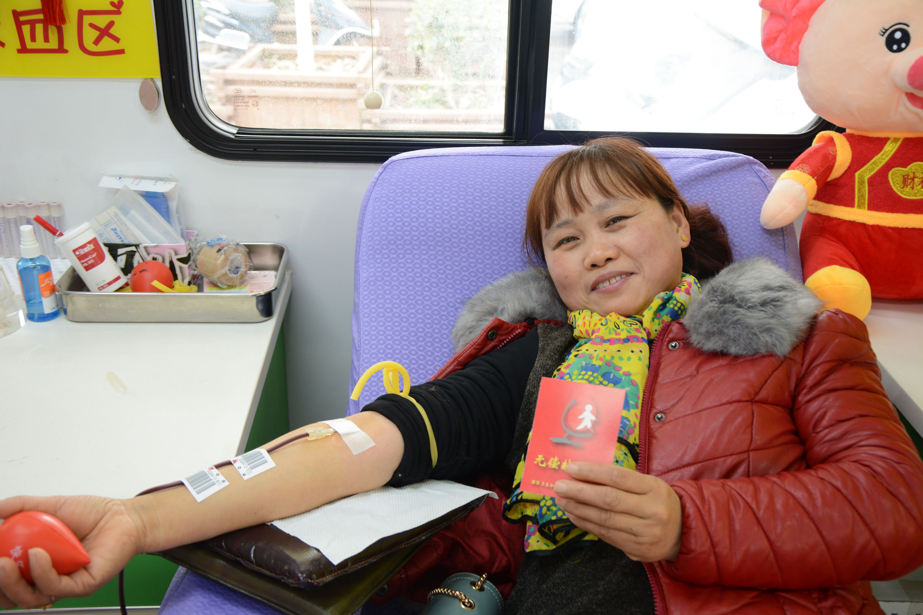 安陆的徐运莲女士是我市的固定献血者,早已熟知献血屋的工作时间,节日的上午,她提前赶到。当工作人员刚到献血点时,徐女士熟悉的身影出现在眼前,这是徐女士第11次参加献血了,她以无偿献血的方式为病患献上了节日的生命礼物。