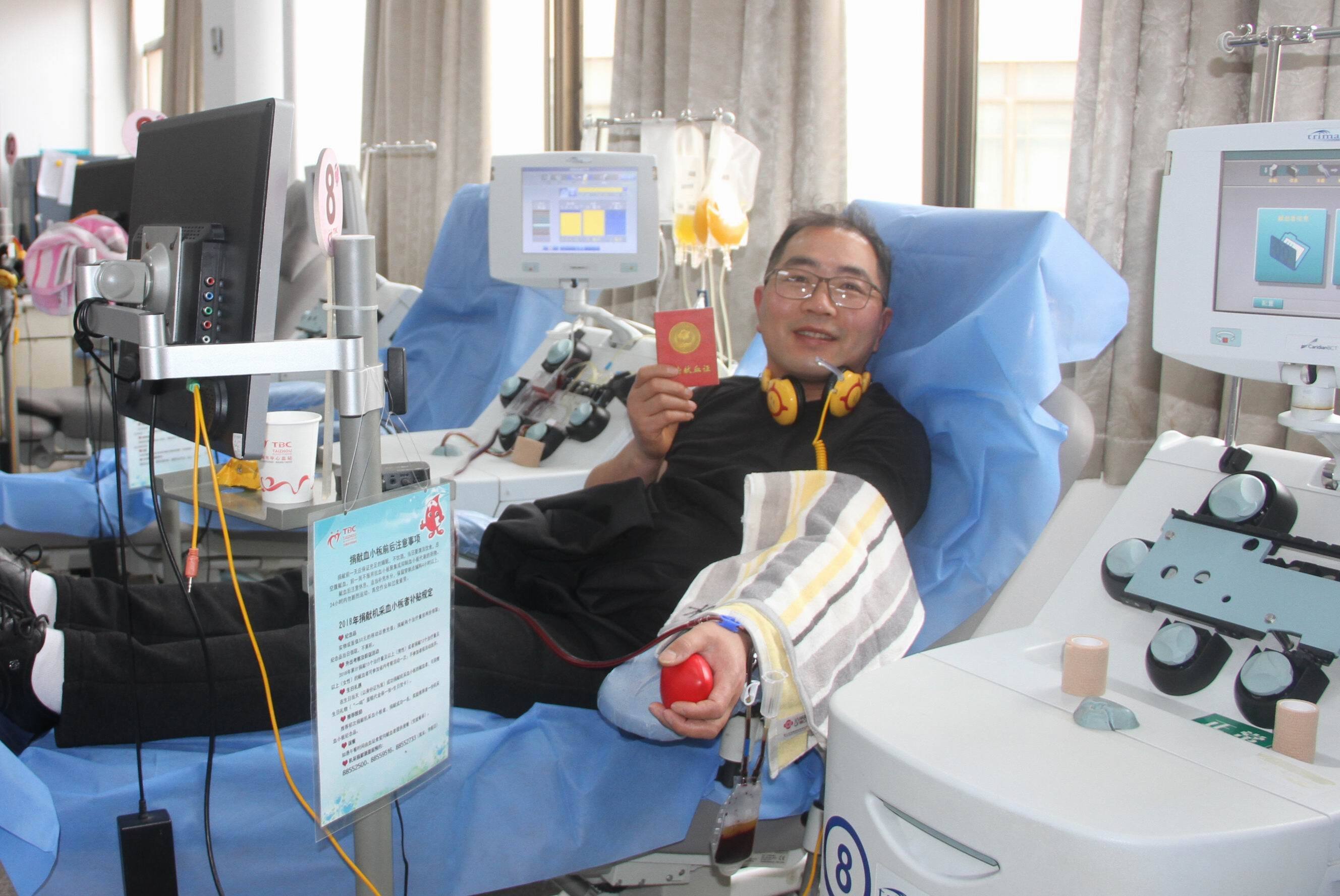 2019年新年伊始,叶国华又再次来到了台州市中心血站捐献机采血小板,对他来说这不仅仅是新年第1次献血,也是自己的第100次献血。