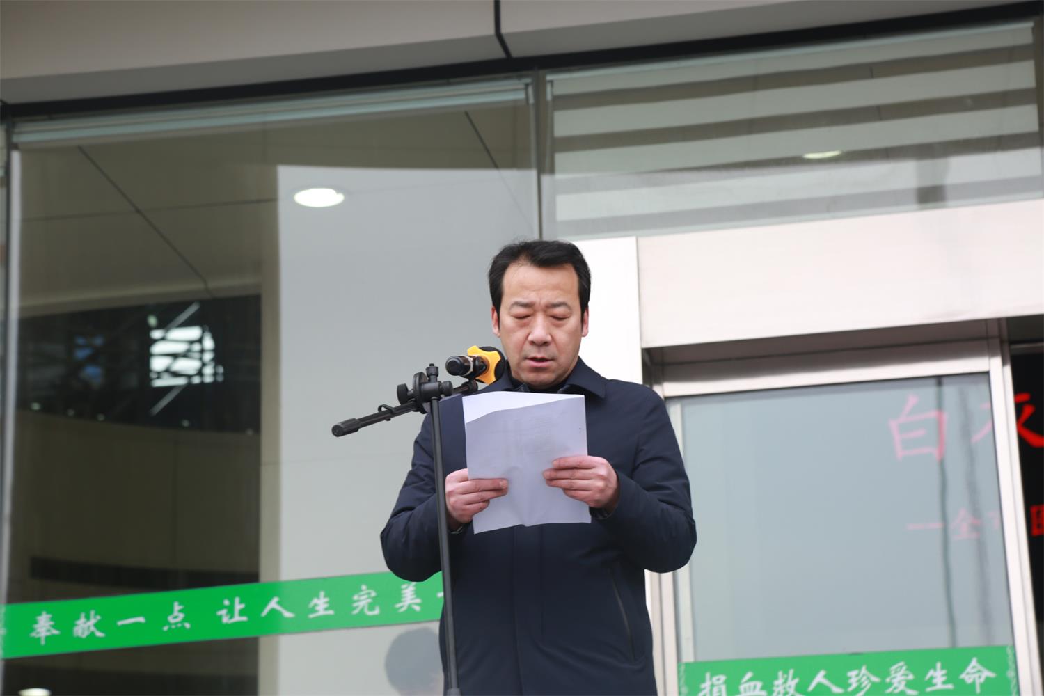 汉川市精神病医院医生刘志刚在活动启动仪式上发出无偿献血倡议。