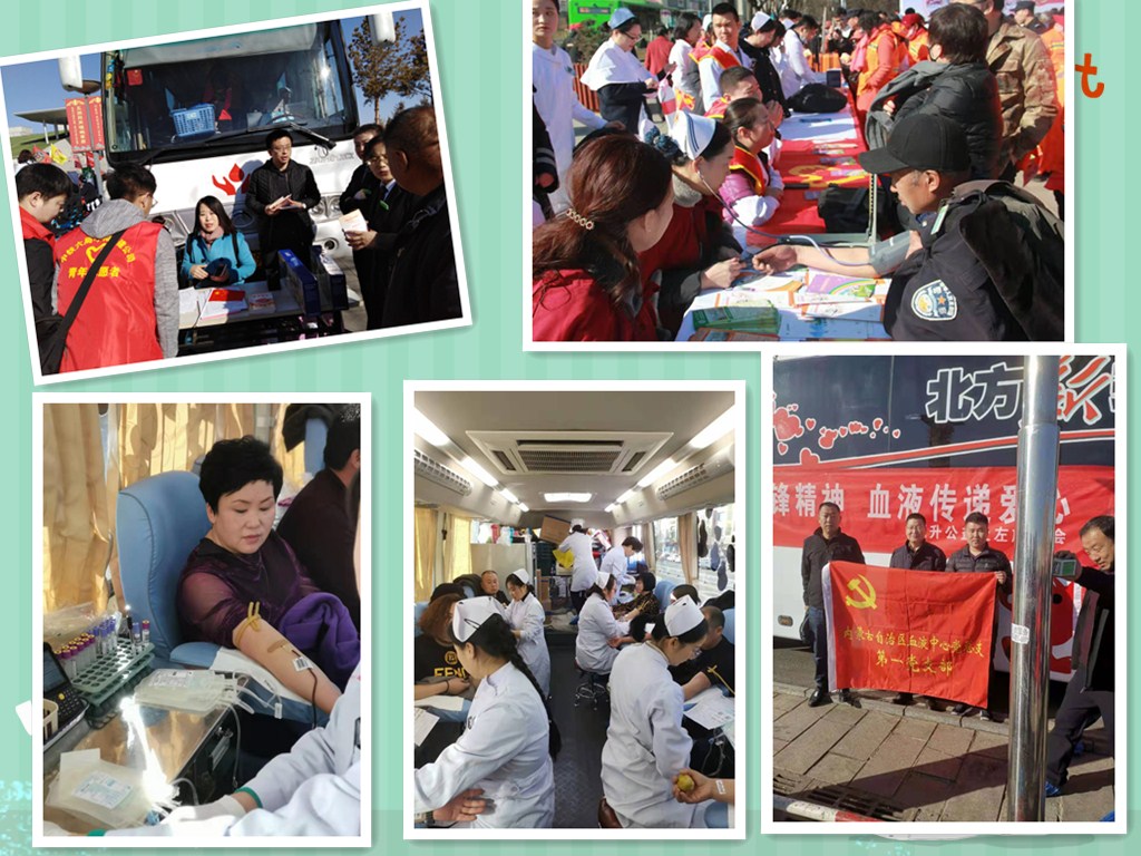 支部党员分3个小组,分别在土默特左旗组织的志愿服务集中示范活动无偿献血活动现场,自治区团委等委办厅局联合组织的学雷锋主题志愿服务活动博物院无偿献血活动现场,内蒙古、呼和浩特市两级红十字会组织的学雷锋志愿者服务集中示范活动血液中心无偿献血活动现场,开展献血服务。