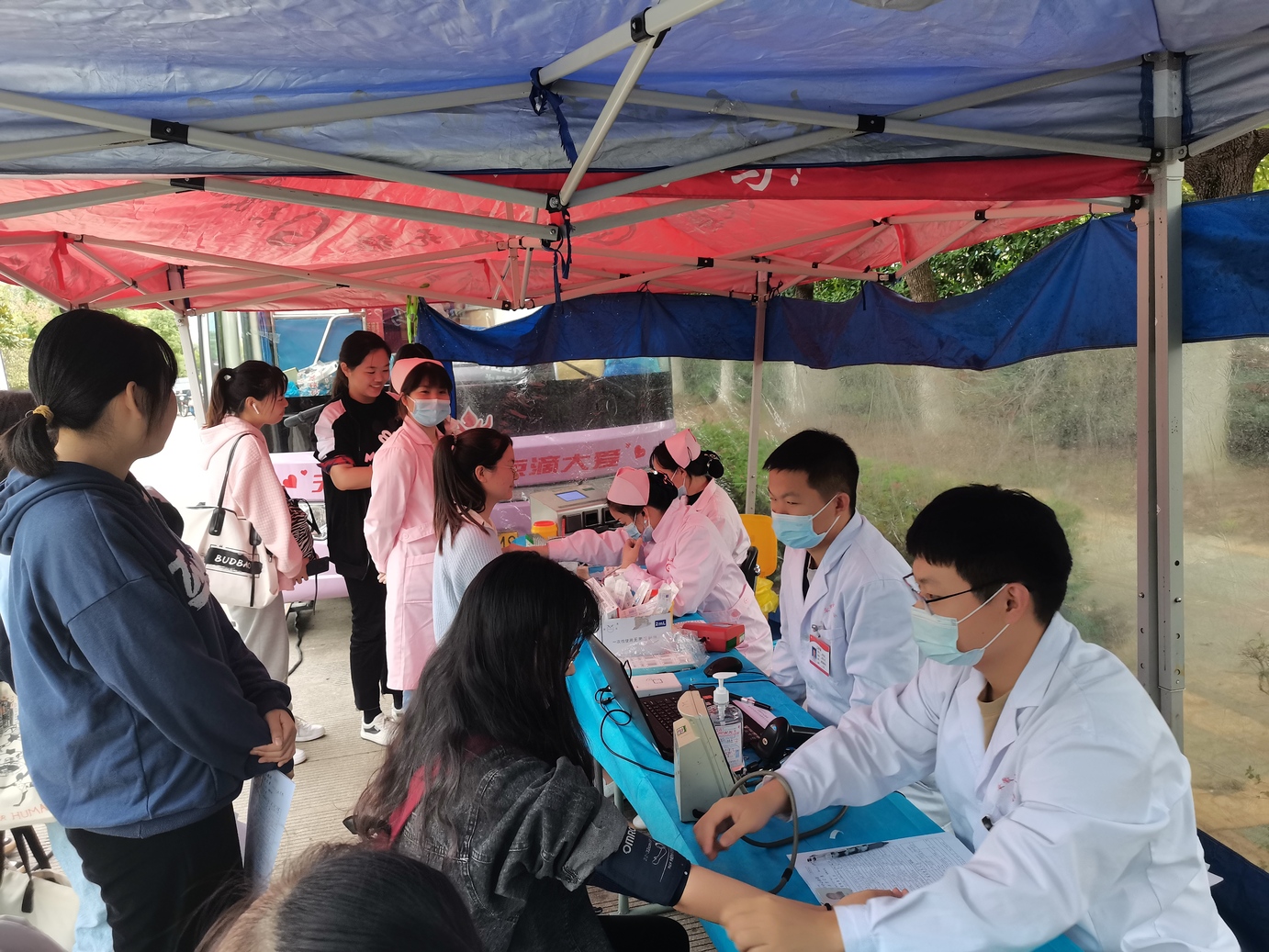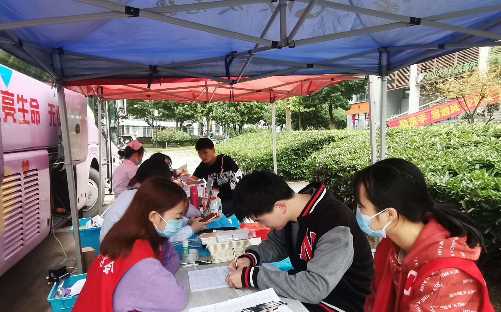活动现场,同学们大多是结伴而来的,有朋友,有室友;大家共同为社会贡献自己的力量。
