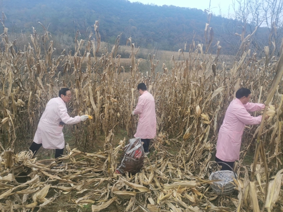 2021年10月28日,血站全体党员在站党支部书记、站长杨翟栋的带领下,来到宜君县哭泉村,走访看望了结对帮扶的朱桂芳、闫长山两户群众,了解了近日生产生活情况,并来到两户群众家中的玉米地里,帮助抢收玉米。