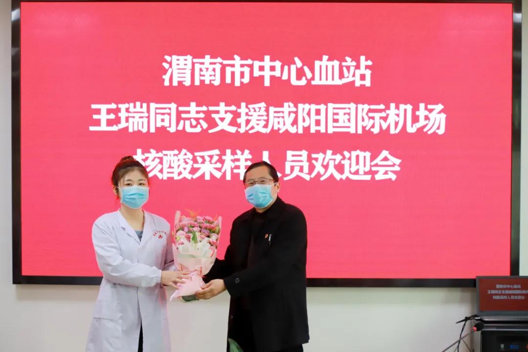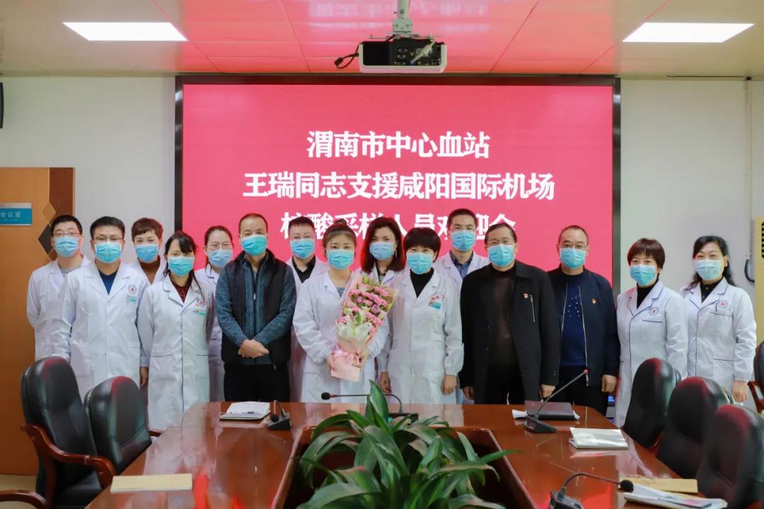 会议对出色完成使命的王瑞同志表示欢迎,对她的工作给予肯定,感谢她代表渭南血站积极响应委党组号召,踊跃报名,赴咸阳机场参加核酸采样工作,抗疫期间,尽管受伤,还能坚持工作,受到了防疫组领导的表扬,为血站争了光,王瑞的抗疫精神值得大家学习。