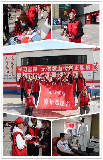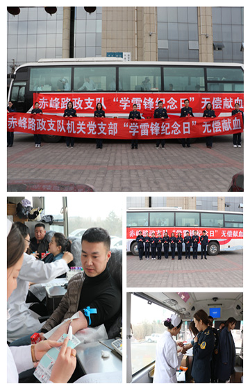 在第56个“学雷锋纪念日”,赤峰市中心血站出动6辆献血车、医护人员50人在全市组织开展无偿献血活动,分别去往红山区步行街、松山区步行街、敖汉旗、高速公路二支队赤峰支队、713部队、赤峰路政支队。同时来自赤峰学院的20名志愿者在红山区步行街进行了无偿献血宣传,发放宣传材料2000余份,据统计活动当天共218人参与无偿献血,献血量达81600毫升。