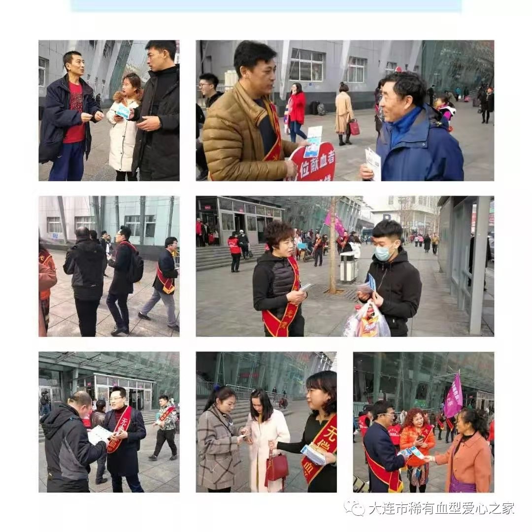 2019年3月2日大连市稀有血型爱心之家团队51人和大连市慈善总会甘井子区义工队83人,在宗爱玲队长和李林队长的带领下,在大连市凯旋献血屋附近广场举行无偿献血宣传活动,发放宣传资料600多份,成功献血24人,捐献全血8000毫升。当天,通过各位熊猫侠的宣传影响和自己主动走进献血屋献血的志愿者共计34人。