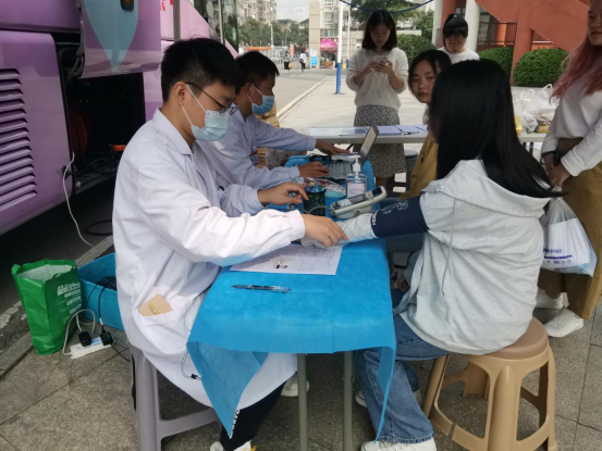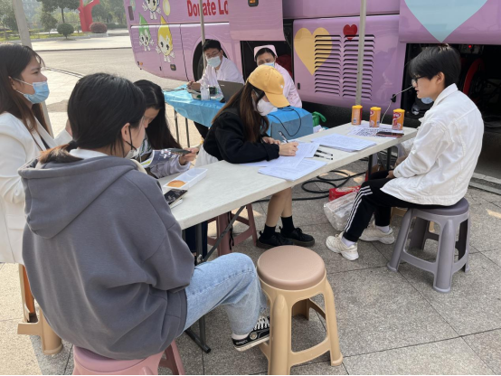 深秋的寒冷令同学们都已穿上外套,但阻挡不了同学们献血热情。同学们井然有序的依次进行信息登记、血液类型检验、静脉采血等环节。