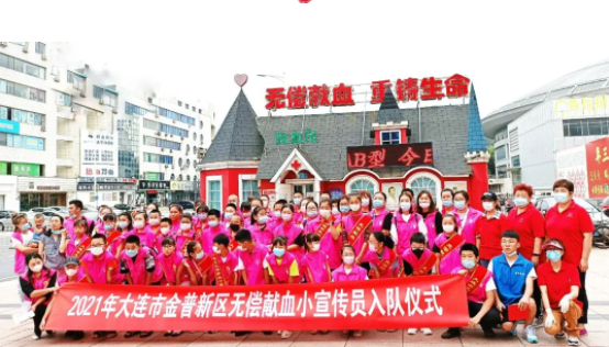 8月29日上午九点,在开学前夕,大连市金普新区无偿献血小宣传员2021年入队仪式在开发区献血屋前举行,大连市无偿献血者志愿服务队队长谭锡博及服务队骨干,大连市无偿献血青少年宣传队副大队长王超凡同学,大连市优秀小宣传员代表,大连金普杏林海娃志愿者团代表及血液中心相关工作人员出席了孩子们的入队仪式。