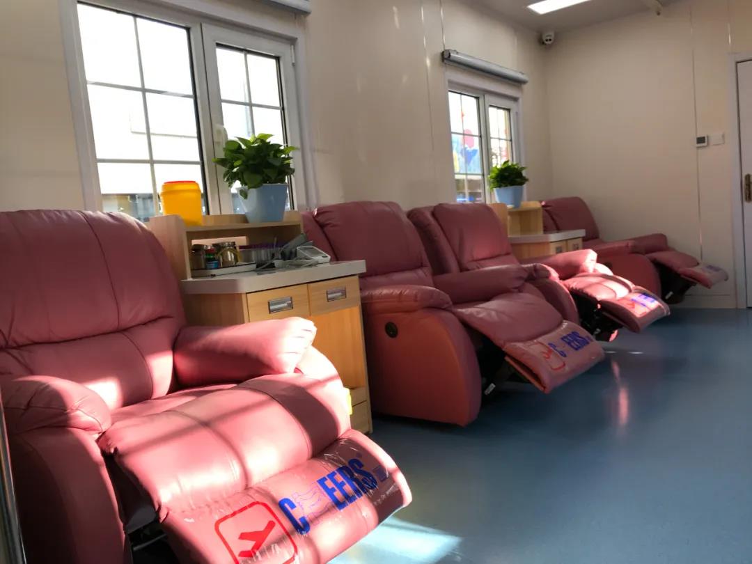 献血屋建筑面积40平米,外观设计时尚新颖,内部布局宽敞明亮,环境温馨舒适,配备有全套的献血登记、休息、采样、检验、血液采集、储存、冷链温控和医疗废物管理系统。空间功能划分科学合理,设有献血登记和保密征询区、体检和初筛化验区、采血区和采后休息区等几大区域,其中采血区配有4套芝华士真皮电动一键自动开合可躺式献血座椅。新建成的献血屋作为承载无偿献血志愿者的爱心驿站,为无偿献血者提供安全、温馨、便捷的环境,让更多的献血者参与到献血行列,充分保障临床用血和血液安全。