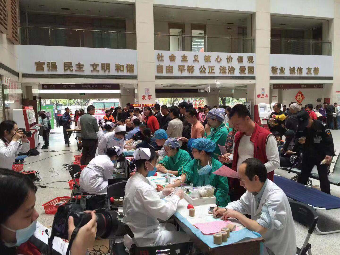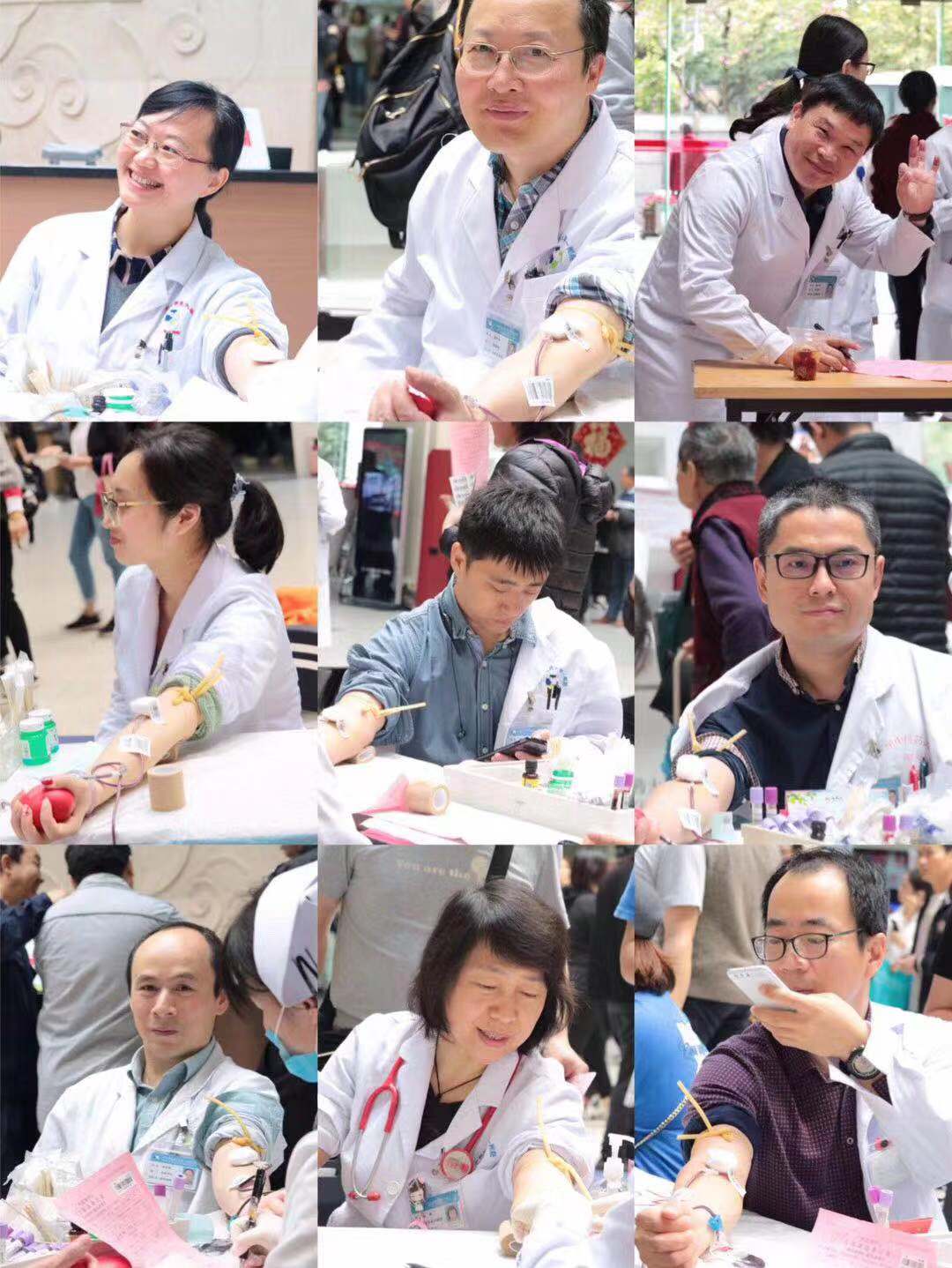 当天,不到8点半,献血现场已经忙碌起来,一群可爱的人奔波于献血现场和科室之间。早上八点半,很多医生、护士便在医院大厅献血位前排起长龙,有的医生趁着早交班的时间匆忙赶来,献完血又匆匆赶回病房查房;有的护士刚下完夜班不顾疲劳赶来献血;有的医生利用手术前间隙的小段时间直奔现场,抽完血之后又迅速赶回各自的医疗岗位;很多医务人员都是熟面孔,已经献血多次,“只要身体允许,就会一直献下去”成为他们的口号……诠释着爱和奉献,他们是最可爱的人!