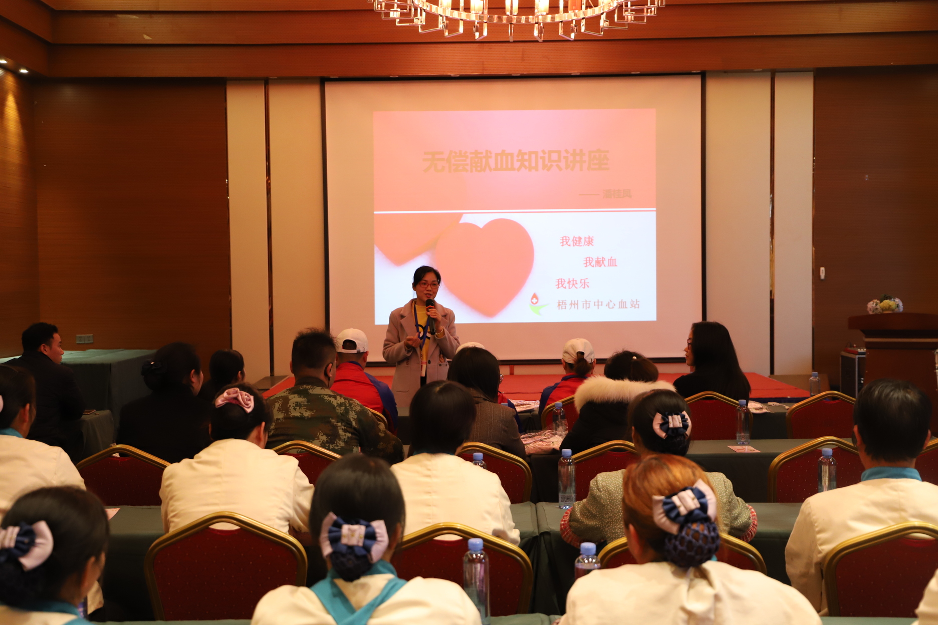 活动前,为了让企业职工对无偿献血有更深入的了解,引导他们积极参与无偿献血的公益活动,3月1日,市中心血站宣传干事潘桂凤,在梧州凤凰城项目会议室为全体职工开设了“我健康、我献血、我快乐”的无偿献血知识讲座。潘老师图文并茂地向大家讲解了无偿献血的意义、血液生理知识、献血流程及注意事项等内容,深入浅出地分析了无偿献血的科学性,并和职工互动释疑,使职工们对无偿献血有了一个正确的认识。讲座现场激发了干部职工对献血知识的浓厚兴趣,纷纷表示要争当无偿献血的宣传员和践行者。