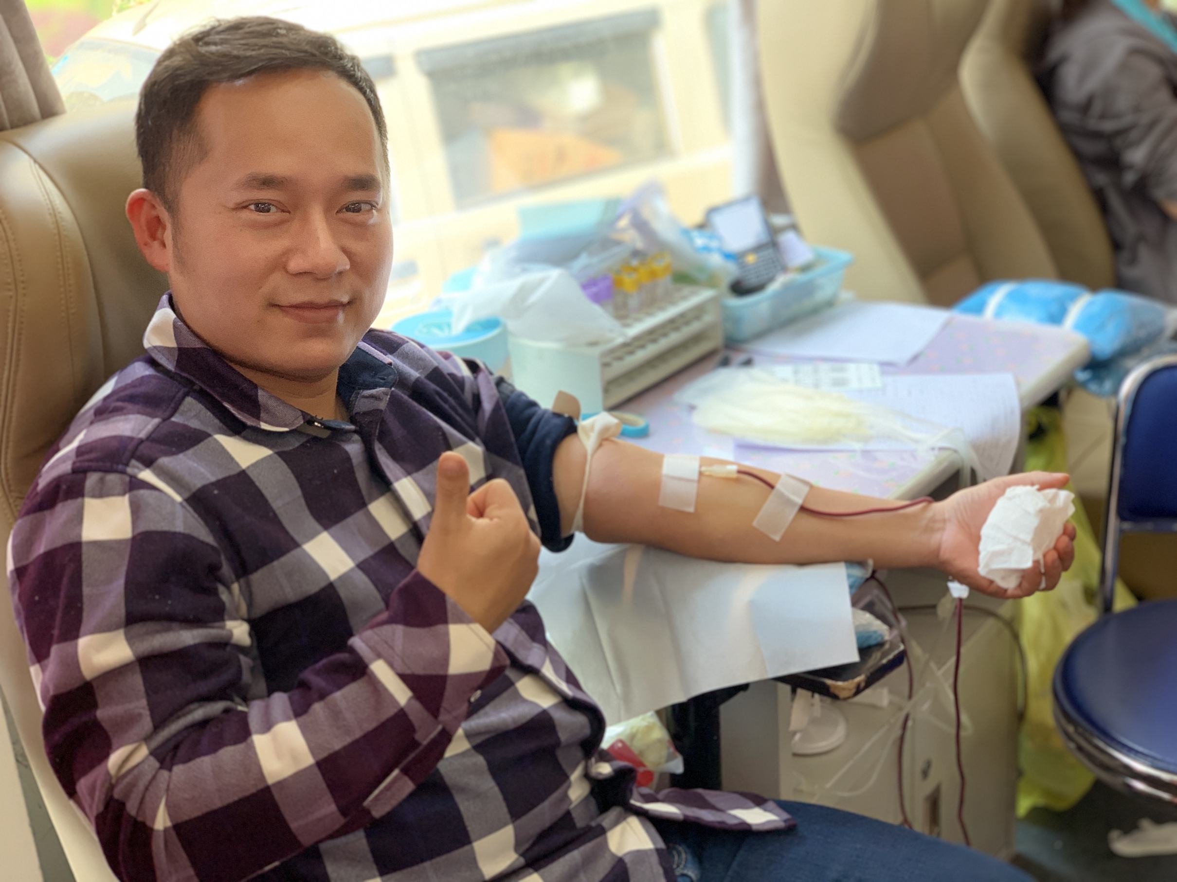 成功献血后的职工拿着献血证秀了一波,并开心地说:很高兴能在雷锋日这天参与无偿献血,从之前的讲座学习中得知献血能刺激骨髓中的造血干细胞活动,促进新陈代谢,提高自己的造血功能,有利于血液的循环,而且可以帮助别人,救人于危难之中,是一件非常有意义的事情。