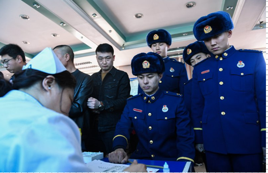 内蒙古锡林郭勒边境管理支队的23名警官们来到我站献血。警官王志超说:“作为一名警官,能够为矿工兄弟们献血,让他们渡过危险期,是我们义不容辞的事,我们感到很光荣。”