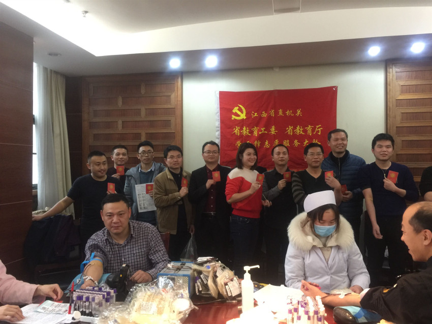 为大力弘扬“奉献、友爱、互助、进步”的志愿服务精神,3月5日上午,江西省教育厅与江西省血液中心组织“学雷锋见行动.无偿献血我先行”的义务献血活动。本次献血活动,共有49人成功献血,献血总量达12400ml。