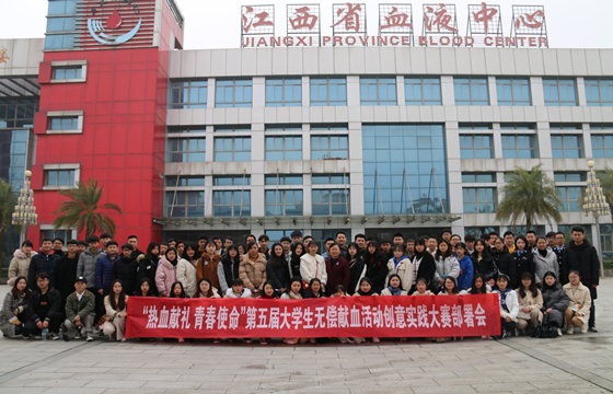 第五届大学生无偿献血活动创意实践大赛活动由江西省献血办主办,省血液中心具体承办,在昌各大院校无偿献血组织部门协办。活动主题为“热血献礼、青春使命”,持续时间为3月至6月,主要内容是围绕新中国成立70周年,结合自身特点,根据活动方案的制定、组织实施、效果等进行综合评比。
