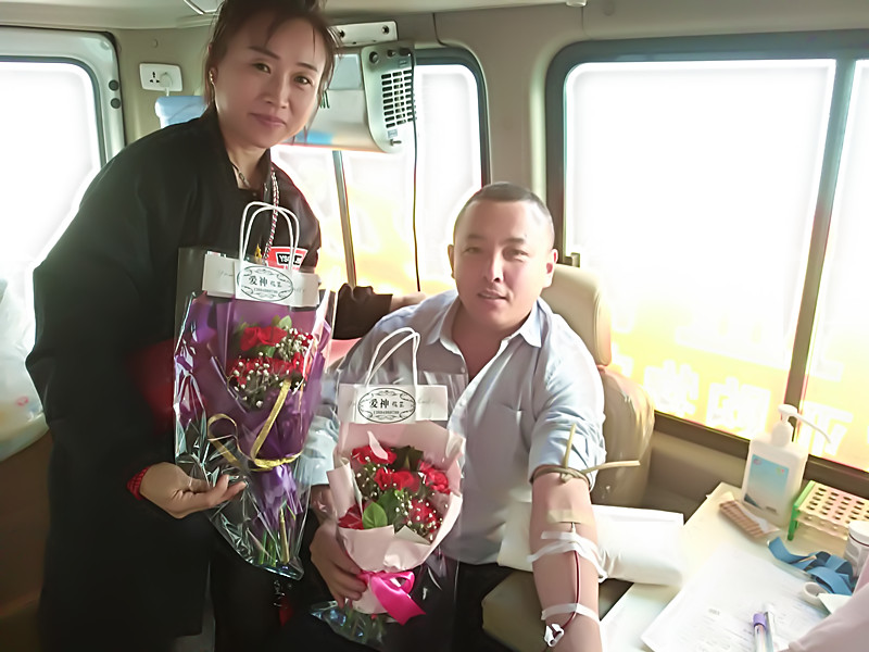 徐淑艳(左)和爱人同献血