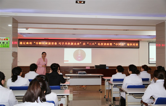 为了纪念“三八”国际劳动妇女节109周年,落实“干部职工优质服务能力提升年”要求,大力弘扬当代女性自尊、自信、自立、自强的时代精神,与新时代同行、为新目标奋斗、在新征程建功,做无愧于伟大时代的新女性,通辽市中心血站妇委会组织开展了“巾帼同树新形象、巧手共织新未来”庆“三八”礼仪讲座暨“中国结”编织培训活动。