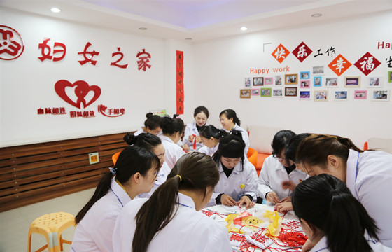 讲座结束后,通辽市中心血站站长、书记金洁带领着姐妹们学起了“中国结”的编织,几位事先已经熟练掌握编织方法的女职工自愿担任起了讲解员,姐妹们坐在“妇女之家”一起认真地编织着自己的梦,其乐融融,和谐满堂。