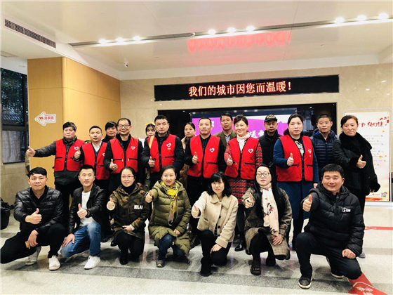 (浙江电视台钱江频道主持人方好、钱江频道主持人祝浩嘉与志愿者代表合影留念)