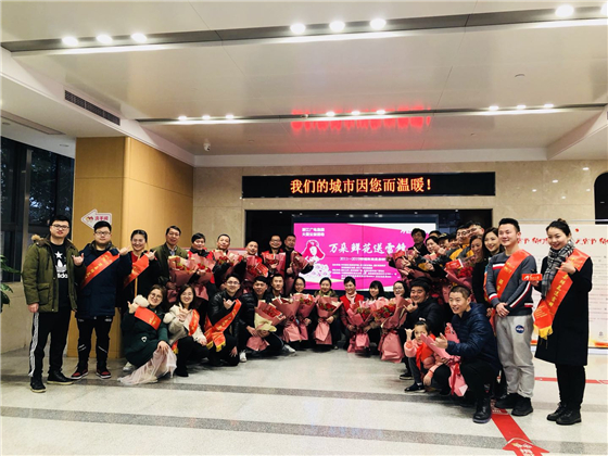 (送花人:祝浩嘉、方好、黄钢锋、张剑,南京银行志愿者,浙江联通志愿者,小学生志愿者,浙江之声吴迪、陈虹)
