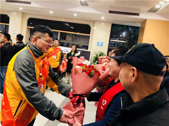 下午三点,省委宣传部副部长、省文明办主任黄明辉宣布“万朵鲜花送雷锋”送花车队出发。3点15分,由省造血干细胞捐献志愿服务队黄钢锋和张剑组成的送花小分队来到浙江省血液中心武林院区,依次为成分献血者代表、全血献血者代表、稀有血型献血者代表、志愿者代表等22位“热血雷锋们”送上鲜花和荣誉证书。