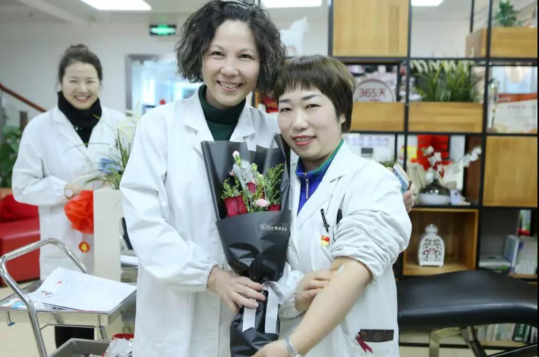 在无偿献血队伍中也有几位男医生,全科医生施巨银就是其中一位,第2次无偿献血的他讲:“能和女同事一起通过献血救人的方式庆祝她们的节日,是一件快乐的事。”首次参加无偿献血的挂号收费处赵铭体检合格后,二话没说伸出手臂献出400ml热血。参加献血的还有左丛珊、方华等“白衣天使”。新虹社区卫生服务中心党支部书记杨月明、副书记沈英一直在献血职工身旁或帮忙拿包或嘘寒问暖。