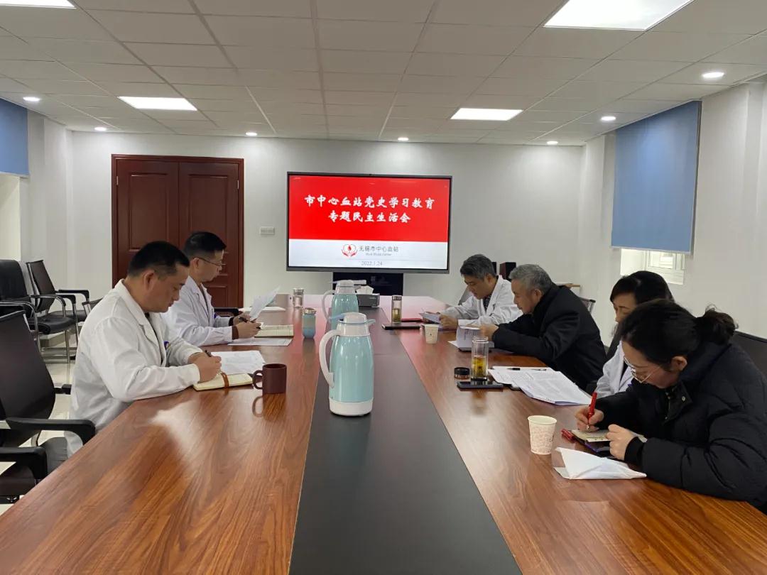 1月24日,无锡血站召开2021年度党史学习教育专题民主生活会。市卫生健康委第五巡回指导组副组长、市卫生健康委四级调研员倪祝庆,市卫生健康委组织人事处副处长孙健到会指导。会议由血站党委书记黄晓阳主持,党委班子全体成员参加。