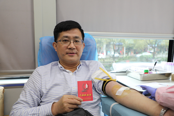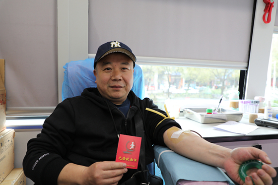 除了单位职工,职工家属也是当天献血活动的踊跃参与者,其中有一位已经献血16次了,是职工家属中的“献血达人”。这位献血者名叫张立新,很早之前就开始参加无偿献血了,而且几乎是每满半年就会去一次。16次只是他在郴州的献血记录,他在外地也留下不少献血足迹。