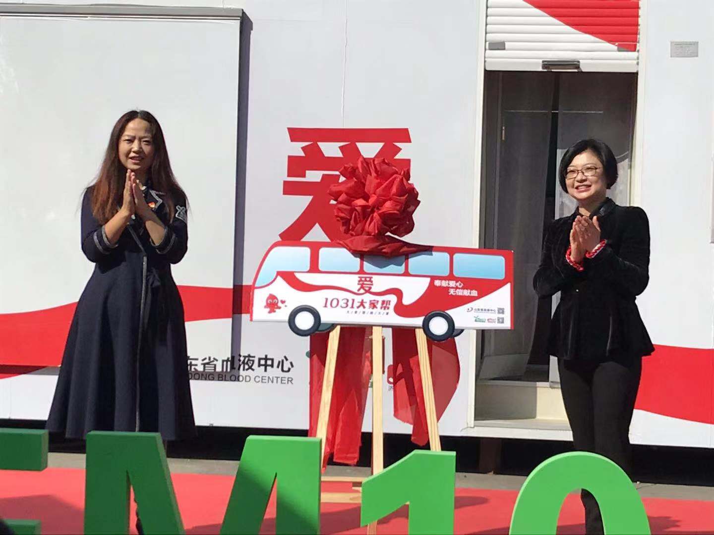 山东省血液中心携手FM103.1济南交通广播将献血车冠名为“大家帮”号,这也是济南应急广播冠名的第一辆献血车。“熊猫血”献血者王玉年同志代表无偿献血者讲述无偿献血献血经历,鼓励大家加入无偿献血队伍。FM103.1济南交通广播主播张帆同志发出倡议:让我们以履行公民义务为光荣,本着关心他人的精神积极参加到光荣的无偿献血队伍中来!FM103.1济南交通广播主播宗阳、丹阳、大飞、申萌四名主播深情朗诵了《生命的地平线》,呼吁更多的人们关注无偿献血。李蓬、魏华、张帆为当天参加无偿献血献血者颁发了1031大家帮公益证书。