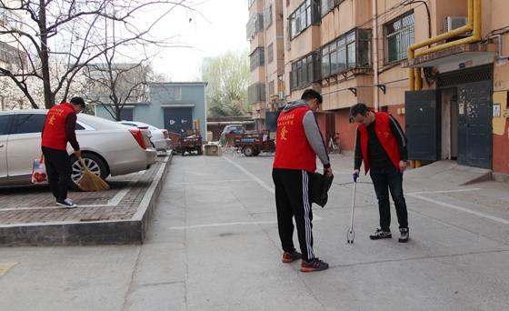 血站党员志愿者自发清理社区环境卫生(于瑞杰 摄影)