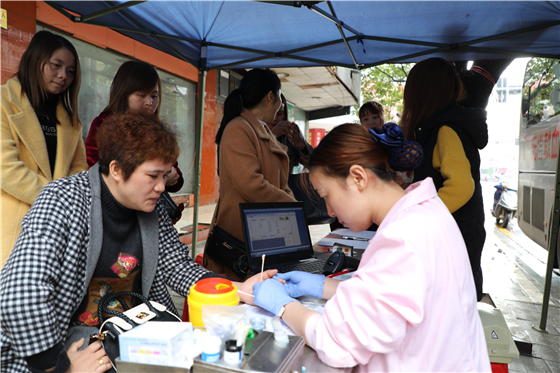 (采血护士正在给献血者做初筛)
