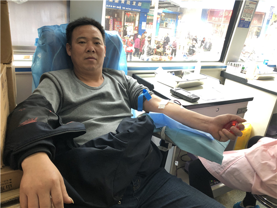 46岁的刘从卫前一天得知献血车要过来,早早地就从塘村赶到了县城。他这是第二次参加无偿献血活动了,说到为什么会再次献血,他表现得有些许感动,原来在2010年的时他是一名货车司机,因为日常饮食不规律,加上过度劳累,回到家中感到身体不适开始吐血。情况紧急,家人把他送往医院,检查才得知自己是胃出血,当时在重症监护室住了48个小时,输了8袋血才得以好转。现在的他没有务工了,身体健康指数也达标了,于是也加入到了无偿献血这支队伍。他表示,以后只要是自己身体允许,每年都会参与无偿献血。