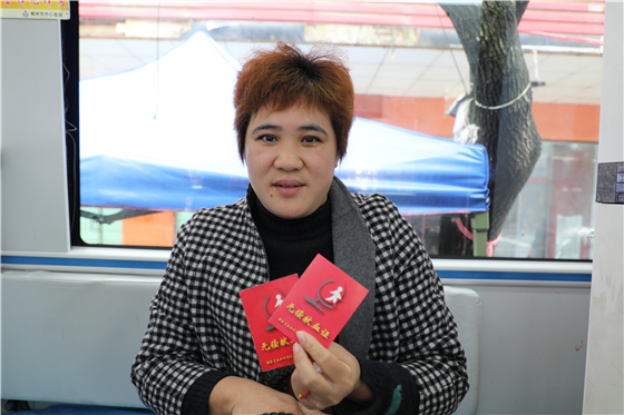 “终于轮到我了。”王东梅笑着说。当天是王东梅第二次参与无偿献血,在车内一直与采血护士热情地聊着天,全程没有紧张的感觉。“因为我1993年怀孕的时候输了别人的血,我知道献血还是挺重要的。”王东梅告诉记者,她经历过所以知道献血的重要性,有时候一袋血液就能挽救一条生命,所以当别人需要时,她一定是第一个撸起袖子的那个人。