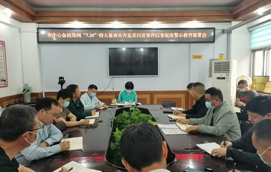 会议指出,开展郑州“7·20”特大暴雨灾害追责问责案件以案促改工作是上级的明确要求,是落实党中央、国务院、省委、市委要求的具体行动,也是推动血站应急管理水平全面提升的重要举措。要以郑州“7·20”特大暴雨灾害追责问责案件为鉴,从中汲取教训,把自己摆进去、把工作摆进去、把职责摆进去,举一反三,引以为戒,强化责任担当,全面提升我站的应急管理水平。