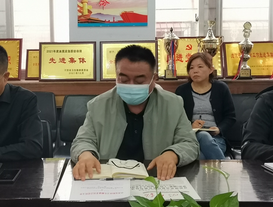 5 月5 日上午,安阳市中心血站在站五楼会议室组织召开郑州“7 ·20 ”特大暴雨灾害问责案件以案促改工作动员部署会议。党支部书记代金平主持会议并传达省委、市委关于郑州“7.20”特大暴雨灾害以案促改工作会议精神,支部纪检委员和春芳对河南郑州“7.20”特大暴雨灾害调查报告、问责处理结果进行了通报,代金平带领大家共同学习了习近平总书记在中央经济工作会议上的讲话和楼阳生在河南省委新冠肺炎疫情防控工作第十六次专题会议上的要求。支委会成员还就我站消防用电、防汛救灾、生产安全等可能存在隐患进行了分析研判,同时也对我站专项以案促改工作进行了具体部署。血站中层以上的干部20余人参加了会议。