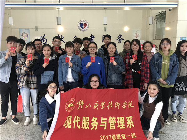 烟花三月,草长莺飞,春日里一片生机盎然,绿色的律动诠释着生命的意义。3月21日下午,江苏省血液中心机采科当天的血小板采集工作即将接近尾声,一楼的服务大厅迎来了一群朝气蓬勃的年轻人,他们是来自钟山职业技术学院现代服务与管理系2017级康复一班的学生,班长告诉工作人员:前不久他们班级因为友爱团结表现突出,被学校授予“文明班级”的称号,今天没课,同学们相约一起结伴同行,想做一件意义非凡的事情,他们一拍即合决定来参加无偿献血。