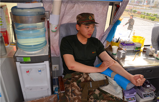 3月26日,武警济源大队开展学雷锋无偿献血活动,用实际行动践行当代军人核心价值观和全心全意为人民服务的宗旨。