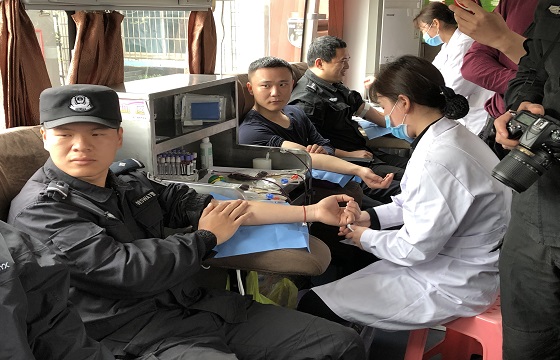 在血站工作人员的指导下,特警队员们有序地进行填表、量血压、化验等献血流程,他们义无反顾的挽起衣袖,用一袋袋新鲜的血液传递出温暖人心的正能量。
