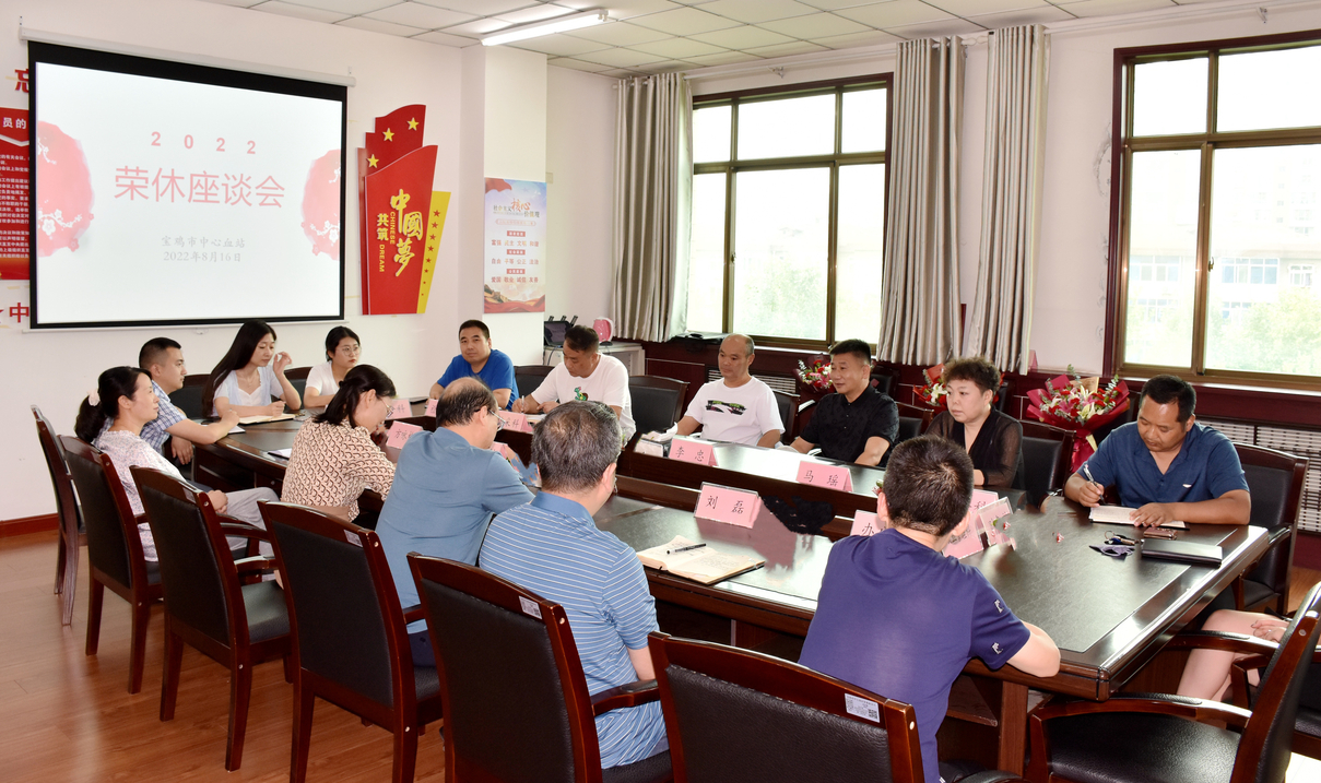 8月16日下午,宝鸡市中心血站召开荣休干部座谈会,用朴素又不失隆重的仪式欢送原体检采血科副主任孙百毅、原总务科科长李忠、原检验科检验师马瑶3名同志光荣退休。站领导班子成员、各科室负责人及职工代表参加了座谈会。会议由党总支书记李拴林主持。
